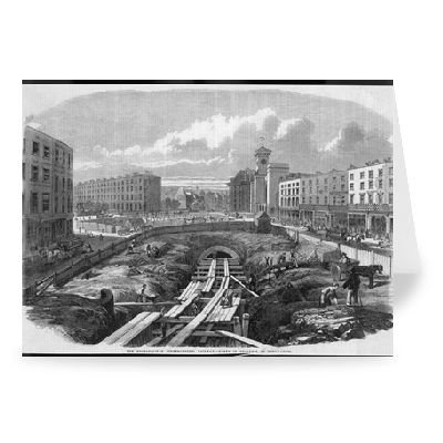 Art247 - 'Building underground railway near Kings.. - Carte de vÅ"ux (paquet de 2) - 17,8 x 12,7 cm - Dimensions standards - (paquet de 2) - Art247