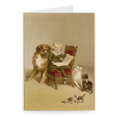 Art247 - 'CHILD, PETS & BOOK' - Carte de vÅ"ux (paquet de 2) - 17,8 x 12,7 cm - Dimensions standards - (paquet de 2) - Art247