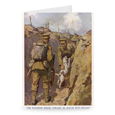 Art247 - 'Dog and owner reunited in the trenches,.. - Carte de vÅ"ux (paquet de 2) - 17,8 x 12,7 cm - Dimensions standards - (paquet de 2) - Art247